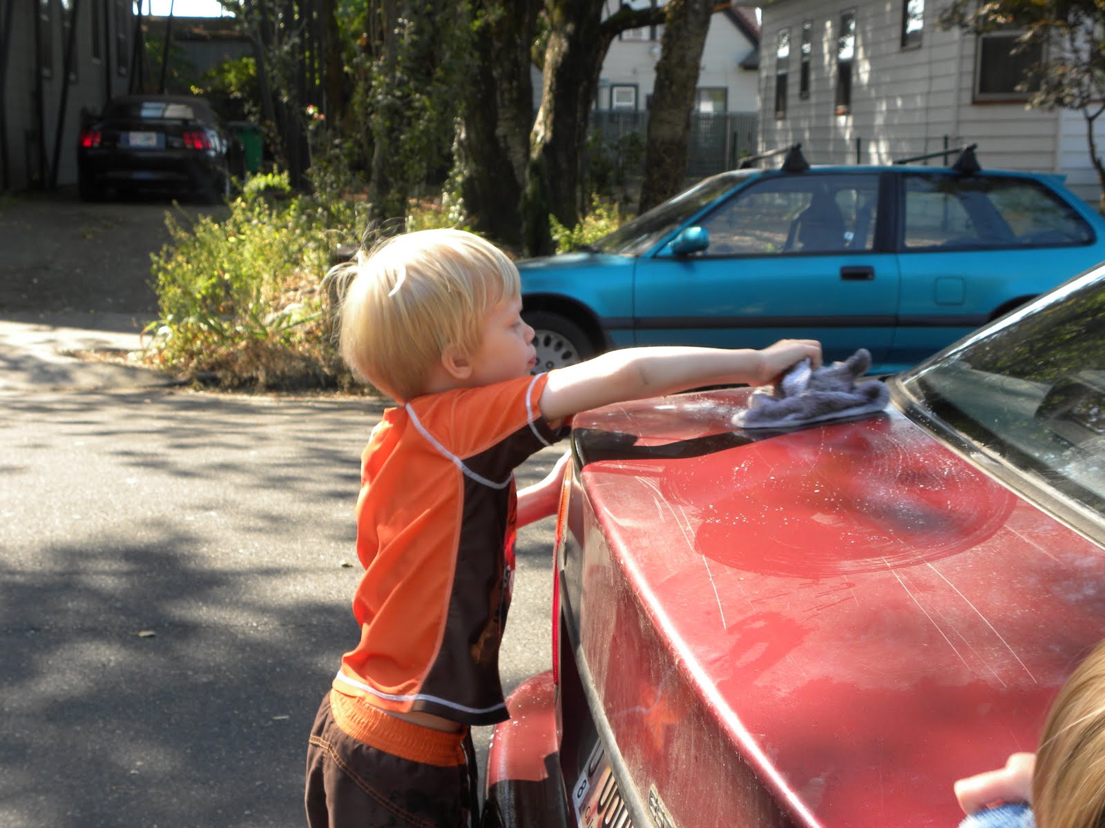 So, with a new found determination he began to save. And he offered to wash the car! Well, who could turn that offer down. It was during our recent heat wave, so it was entertaining and practical. So after a couple weeks of saving and working he finally had his five dollars saved. (with $1.50 to spare!)